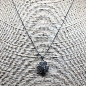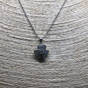 שרשרת כסף קצרה תליון תלתן משובץ