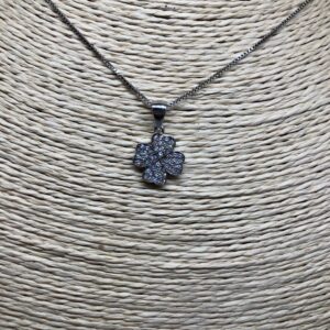 שרשרת כסף קצרה עם תליון תלתן משובץ זרקונים